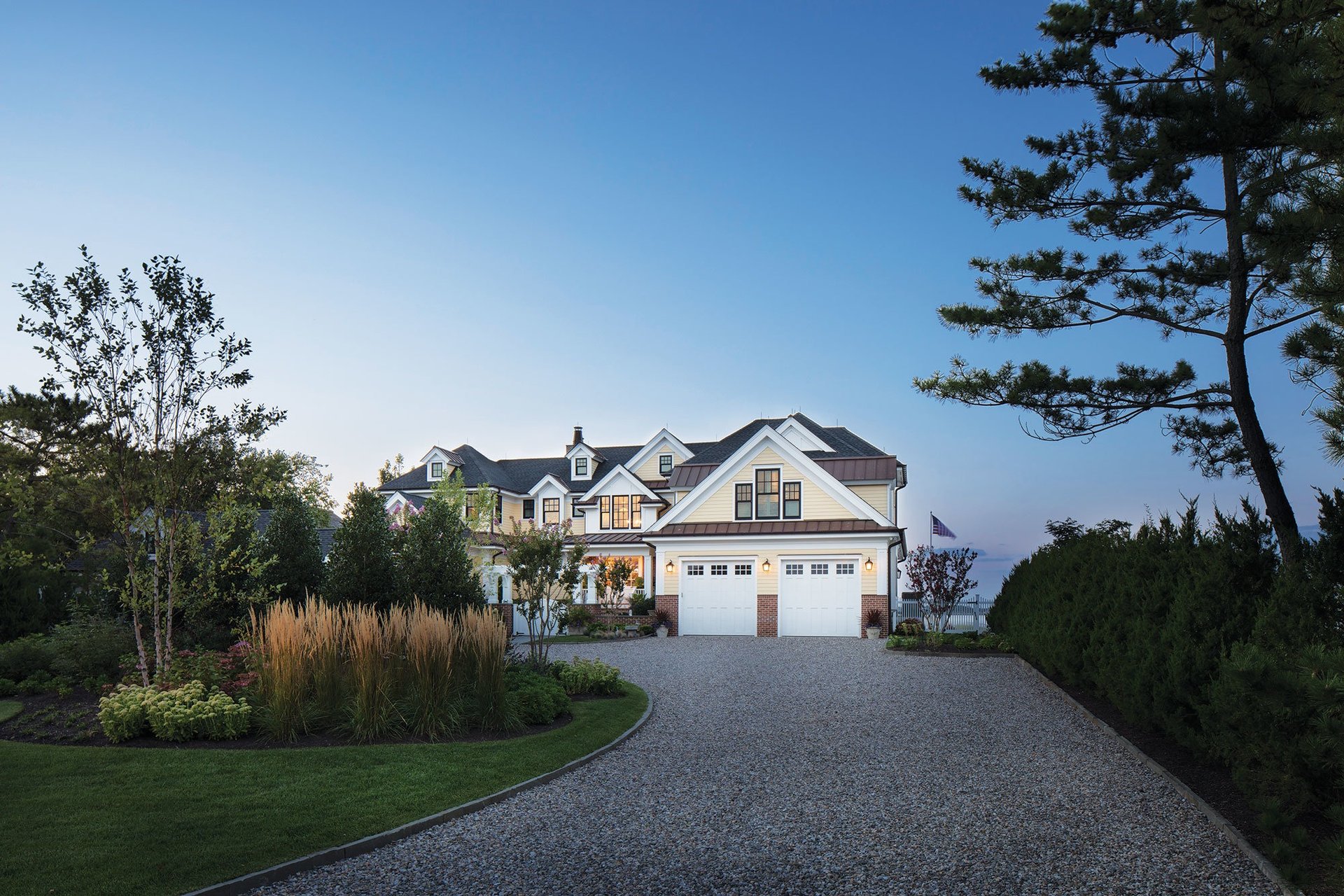 The owners had wonderful memories of their visits to seaside towns such as Nantucket and Newport, and asked the architectual team to incorporate coastal New England cottage details into the exterior. They also requested to create "a look of" but not copying one element of the Hampton Beach house featured in the movie. The new 7,681-square-foot structure — built to withstand storms with features such as brick and fiber-cement horizontal siding — has…