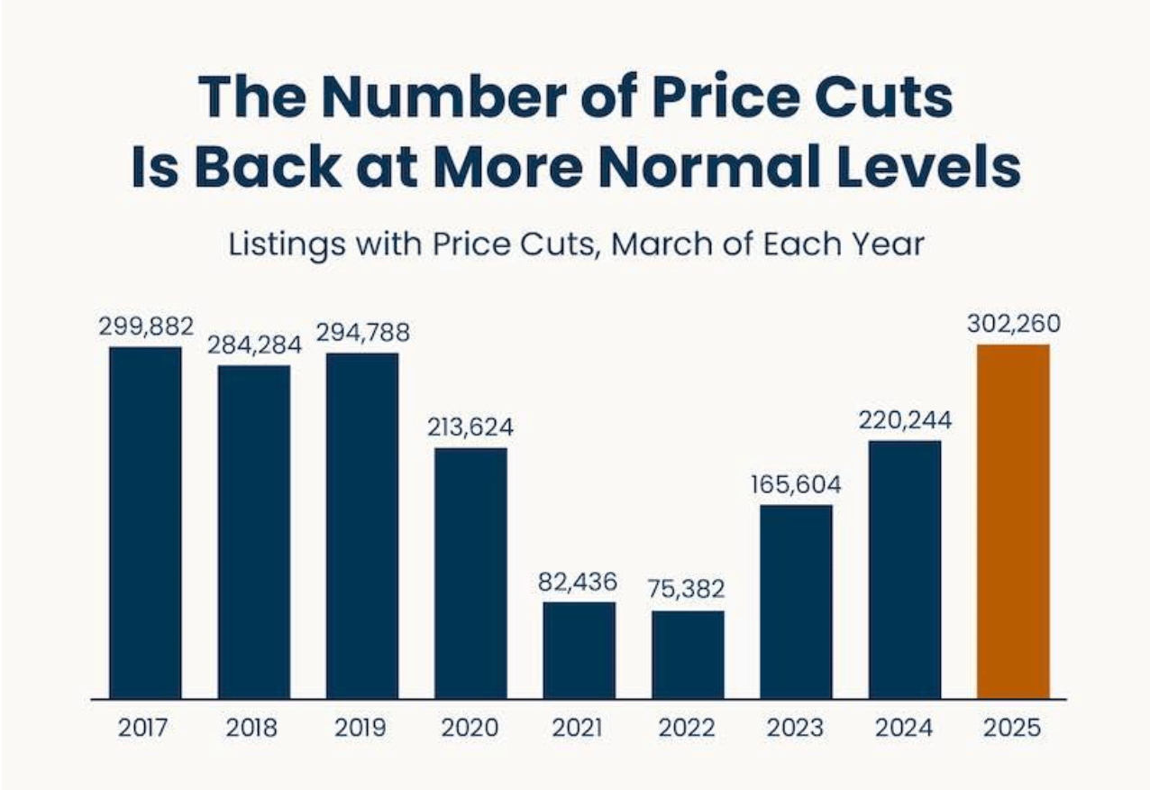 Recent national data shows price cuts are on the rise, returning to more “normal” pre-pandemic levels. In fact, this March saw over 300,000 listings across the country with price reductions — a clear sign that many homes are missing the mark on pricing.
